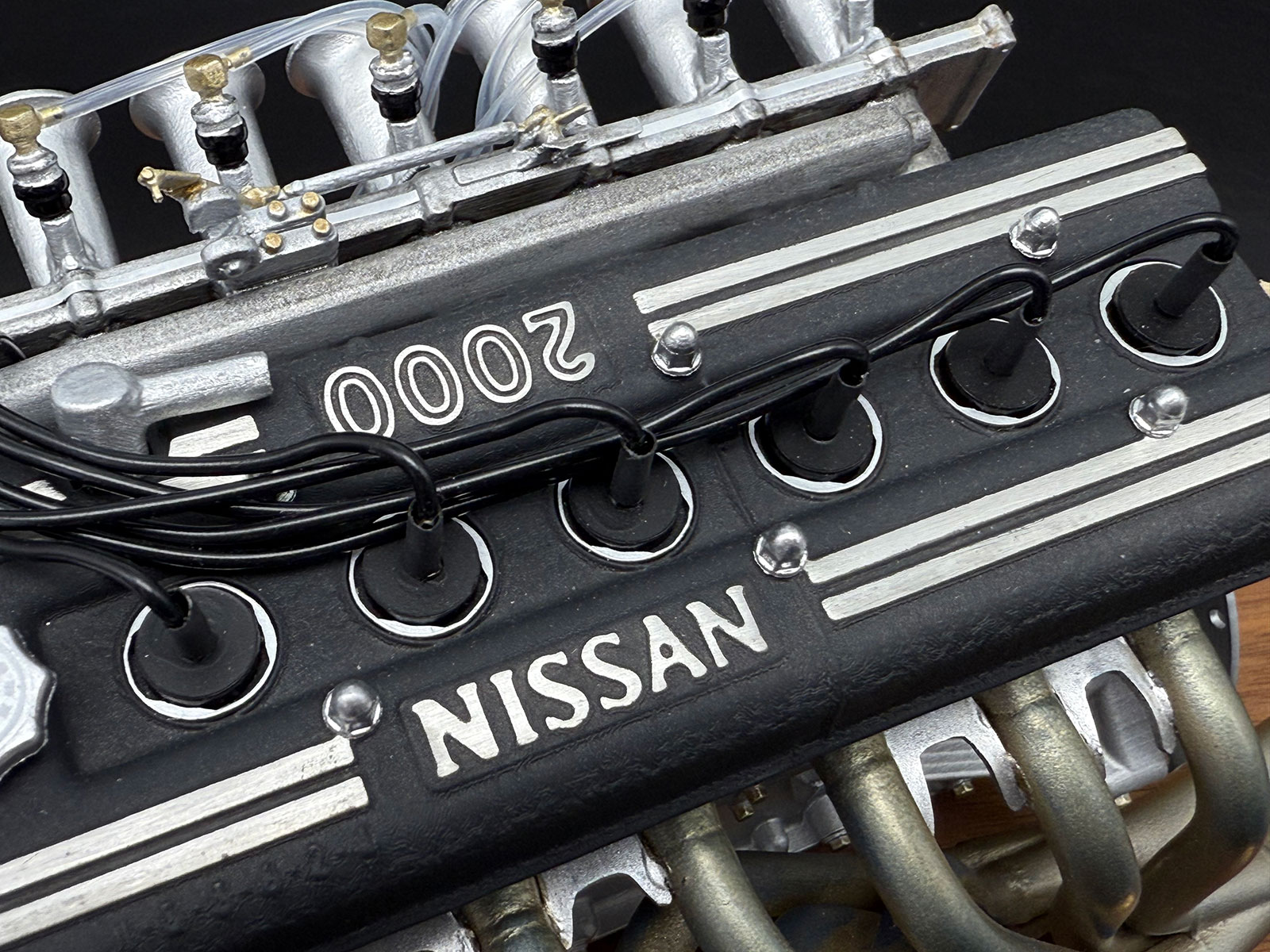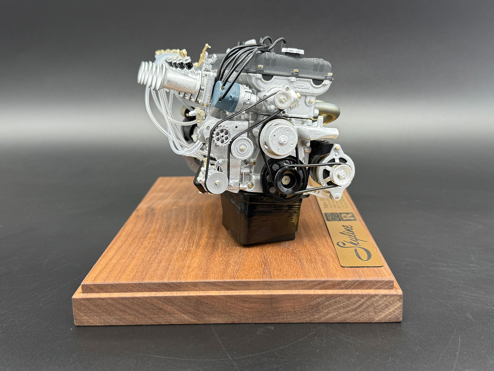 シリコン型にて主要部品をレジンキャスト、結晶塗装のヘッドカバーについては実際の結晶塗装を再現するために、ホワイトメタルの金属部品を製作、匠の手により結晶塗装を施しています。