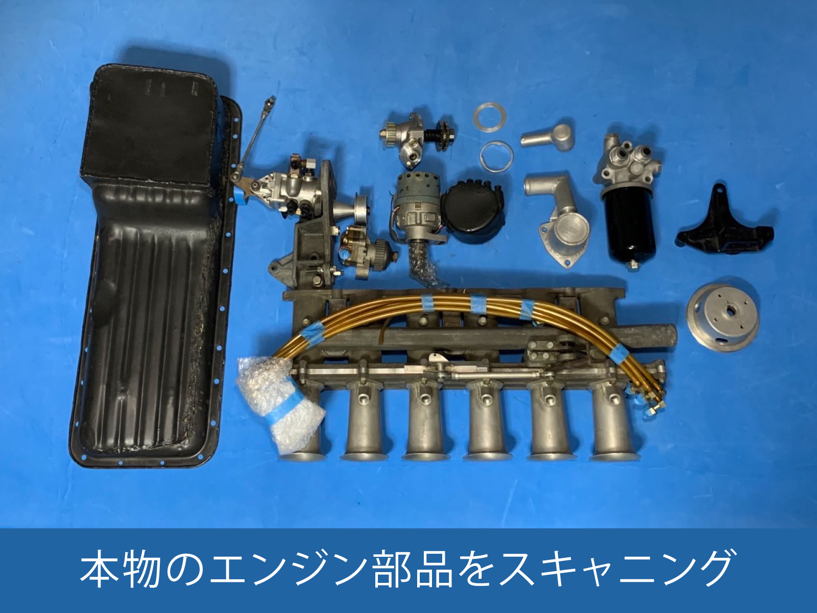 当時のS20ワークスエンジンは現存していないため、資料や当時のワークスエンジンの部品とされる実際の部品を、GT-R オーナーズクラブの方よりお借りしてスキャニング行い、各パーツの3Dデータを製作、3Dプリンターにて原型造形を製作。