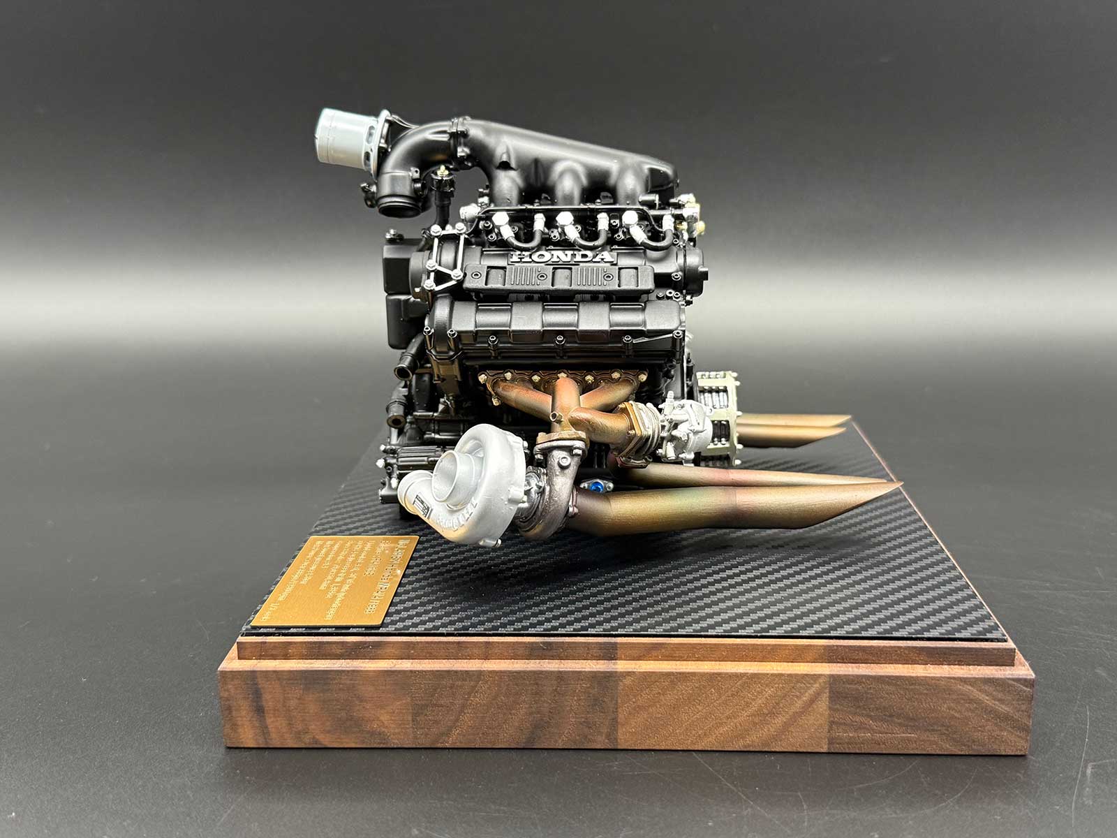 Honda F1™参戦60周年を迎えた2024年にスタートした‟Honda×日下エンジニアリング”のプロジェクト。3作目を飾るのは伝説のユニット「RA168E」です。1.5ℓV6ツインターボを搭載したこのエンジンは、Honda F1™第2期で最強の象徴。今回はこのエンジンをモデル化しました。1988年、マクラーレンMP4/4とロータス100Tに搭載され、マクラーレンチームが16戦15勝の圧倒的な強さでシリーズを制覇。ターボエンジン最終年に華麗に締めくくりました。