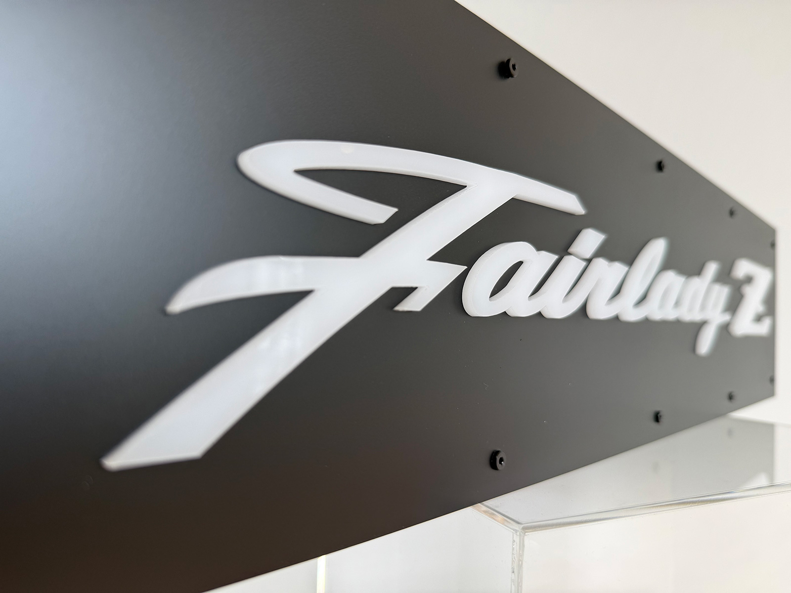 その Fairlady Z のロゴ部分をレーザーカットした個別パーツを組み合わせる事により、パネル面より約5mm立体的に浮き上がらせ、エッジのシャープさと、発光時にエンブレム自体が浮き上がる効果を演出する事により、製品のクオリティーに磨きをかけました。