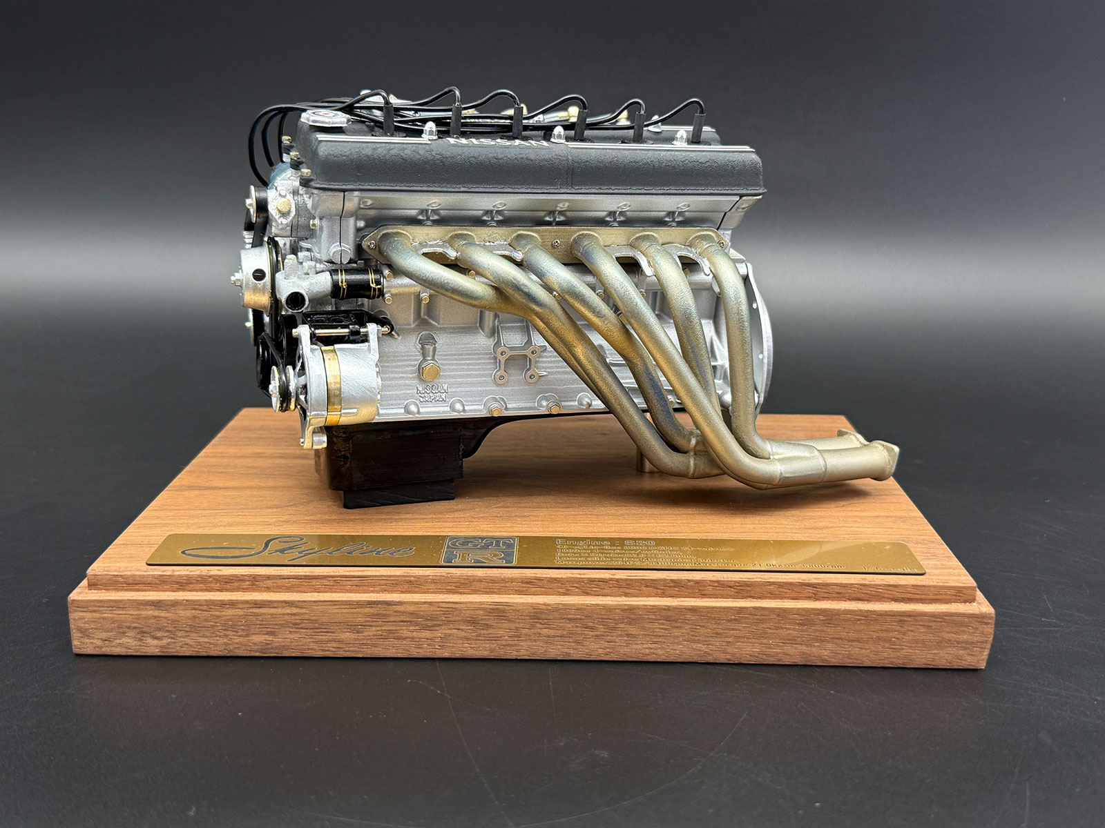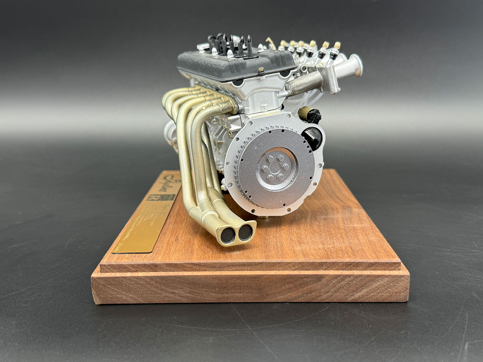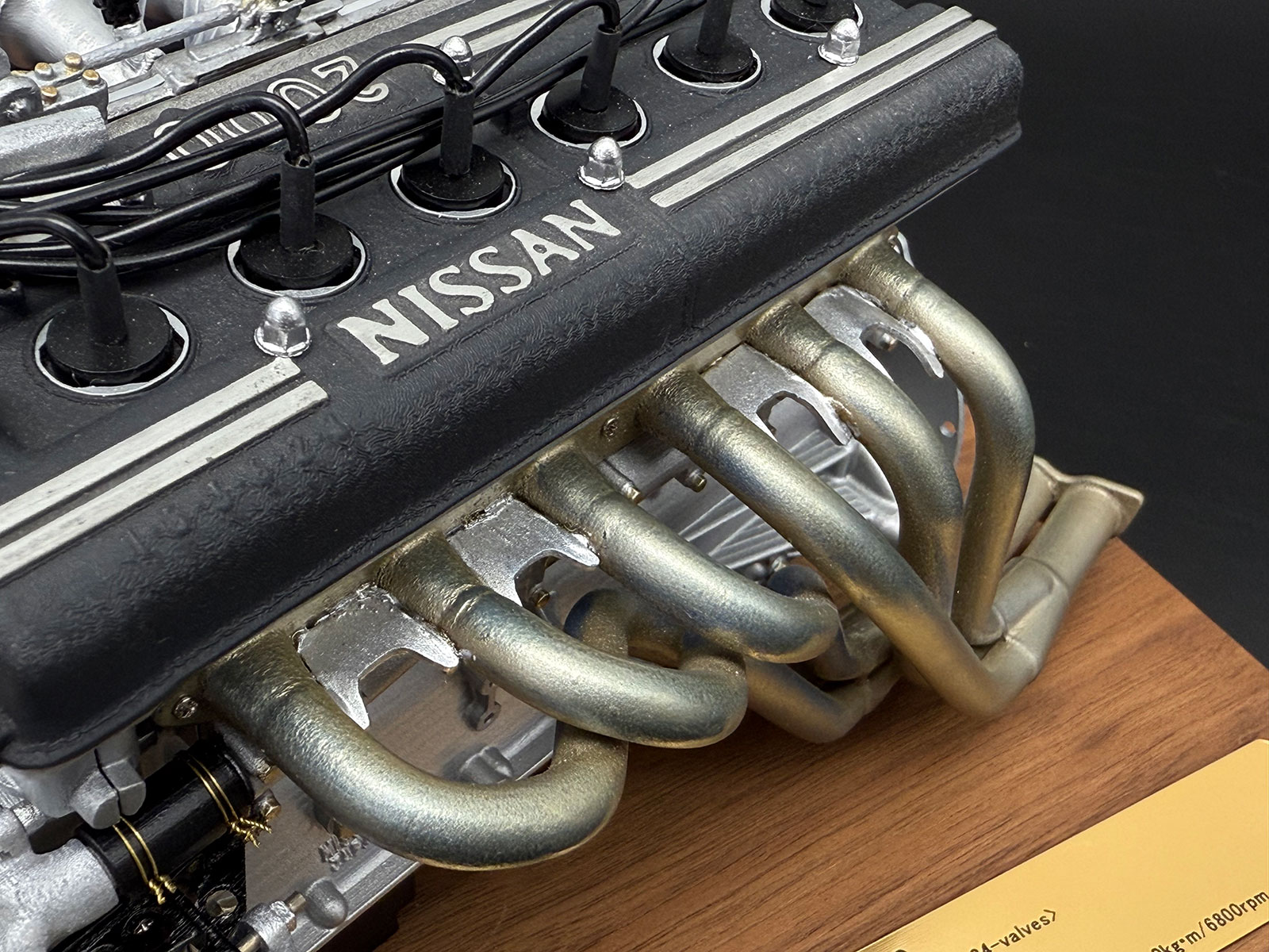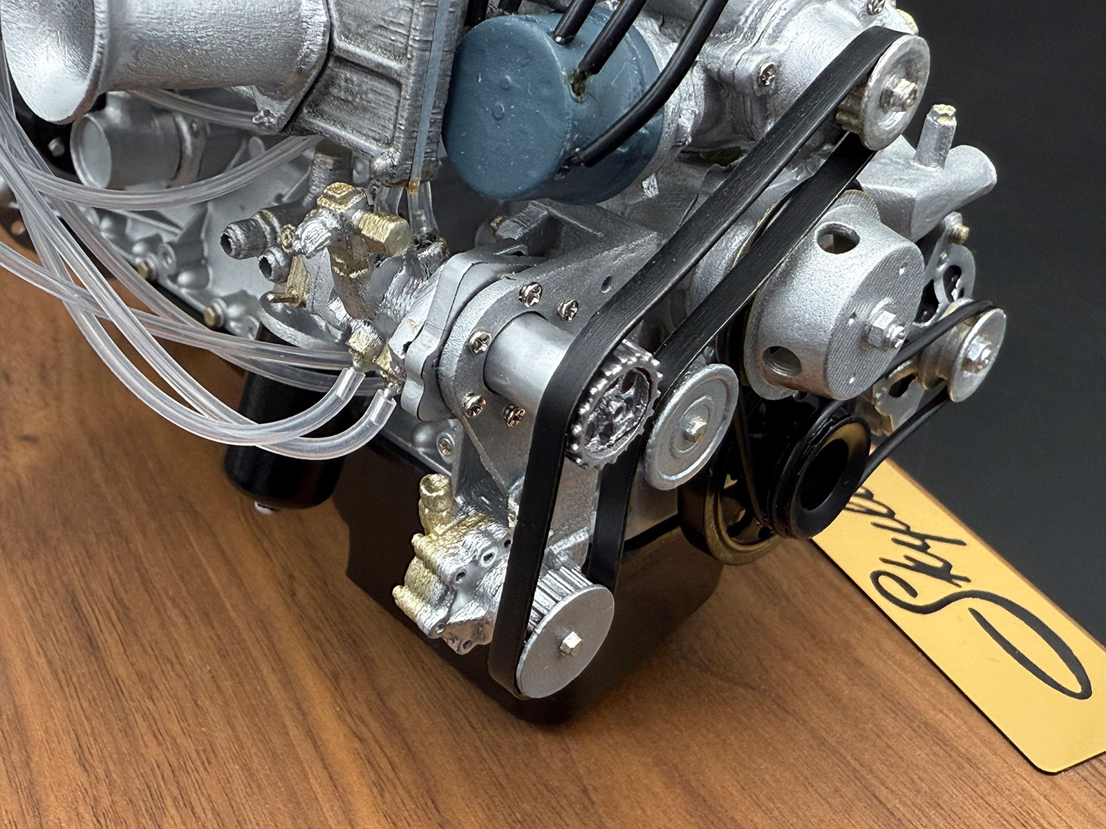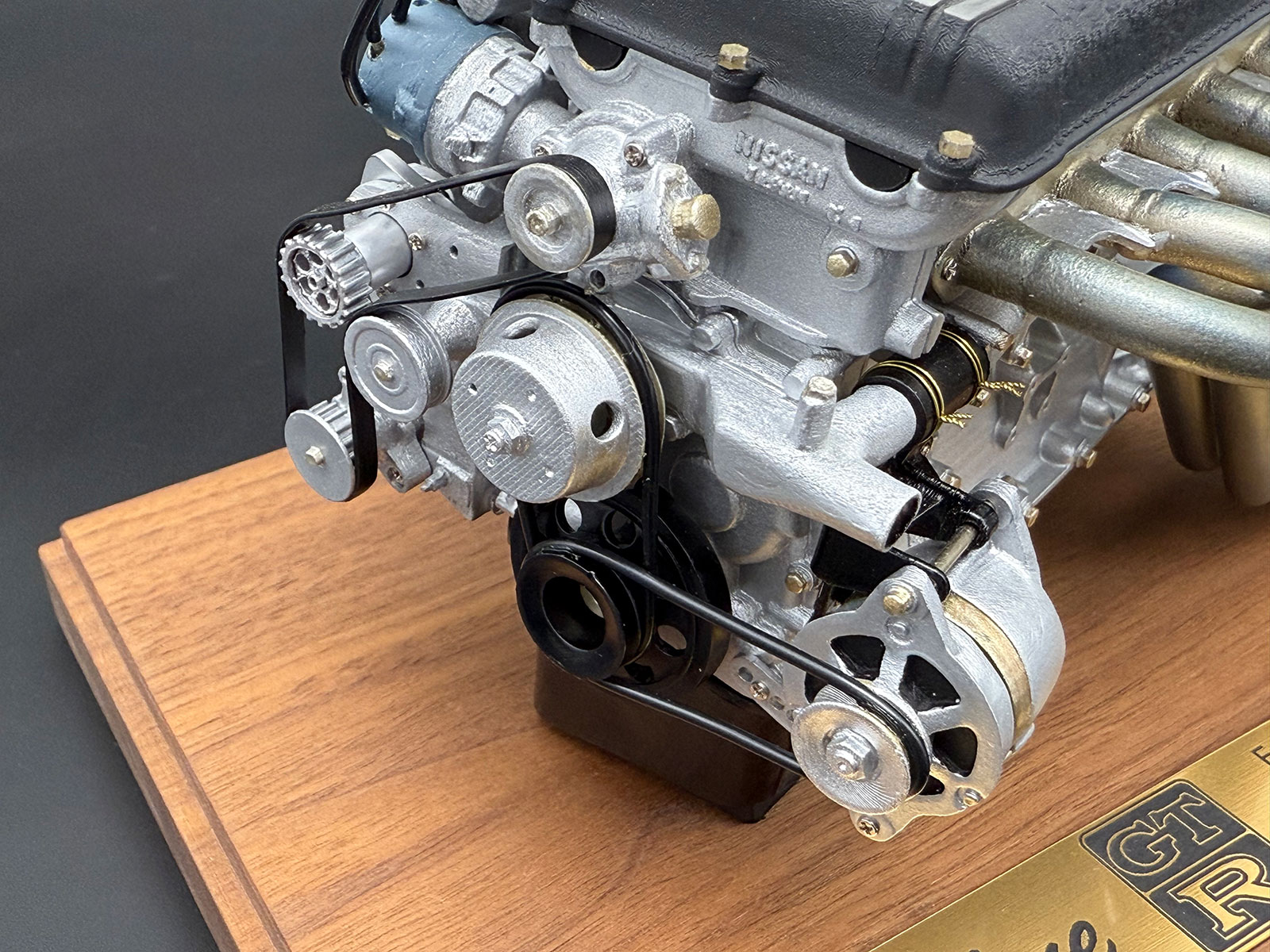 シリコン型にて主要部品をレジンキャスト、結晶塗装のヘッドカバーについては実際の結晶塗装を再現するために、ホワイトメタルの金属部品を製作、匠の手により結晶塗装を施しています。