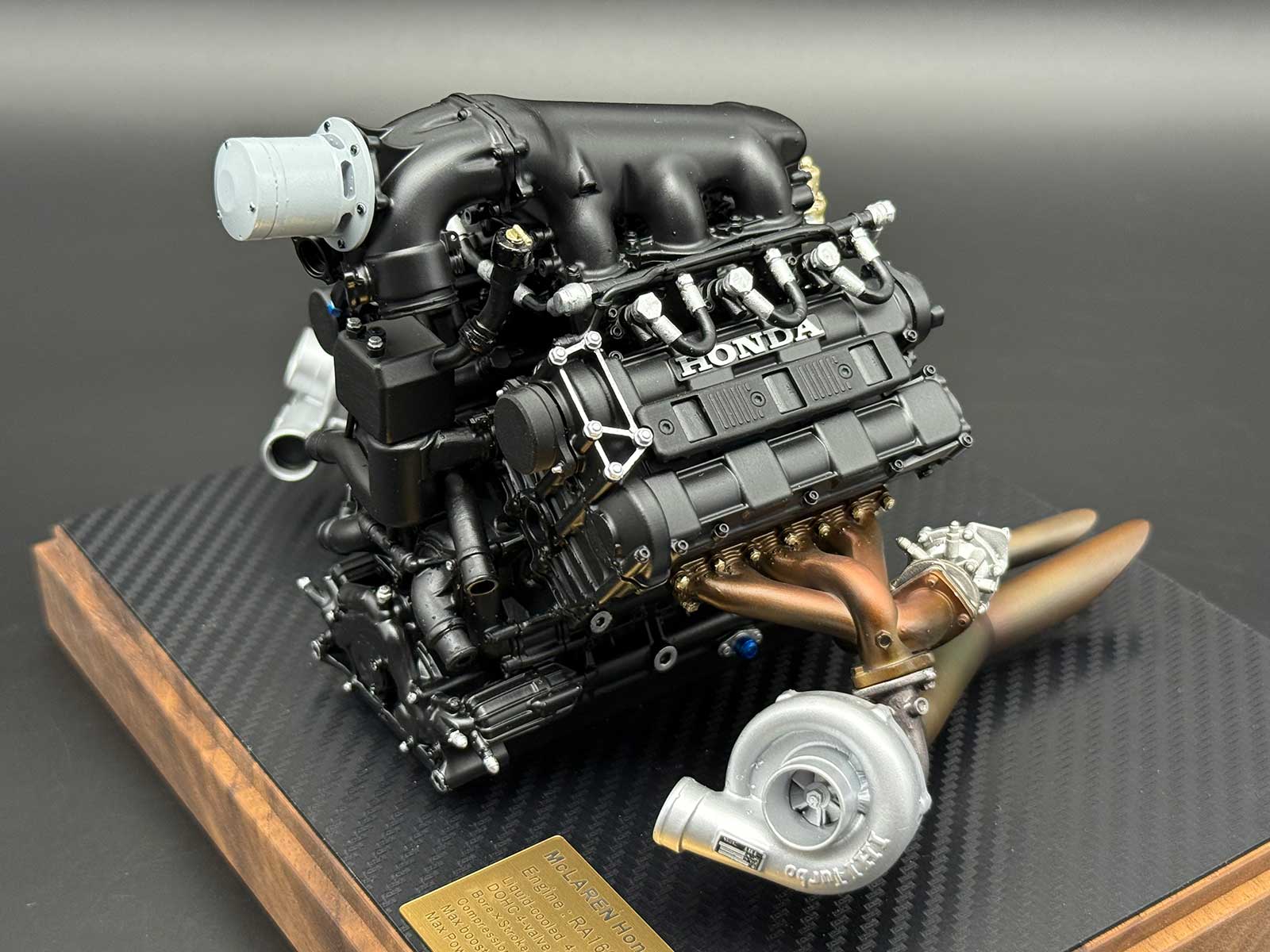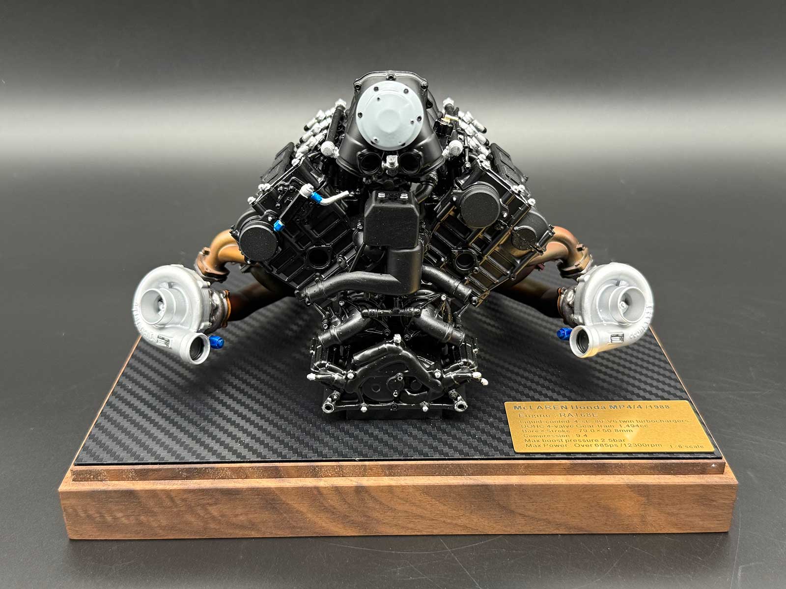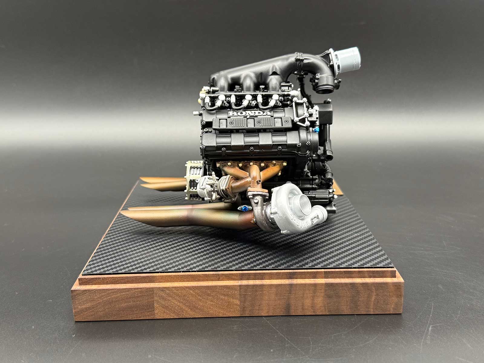Honda F1™参戦60周年を迎えた2024年にスタートした‟Honda×日下エンジニアリング”のプロジェクト。3作目を飾るのは伝説のユニット「RA168E」です。1.5ℓV6ツインターボを搭載したこのエンジンは、Honda F1™第2期で最強の象徴。今回はこのエンジンをモデル化しました。1988年、マクラーレンMP4/4とロータス100Tに搭載され、マクラーレンチームが16戦15勝の圧倒的な強さでシリーズを制覇。ターボエンジン最終年に華麗に締めくくりました。