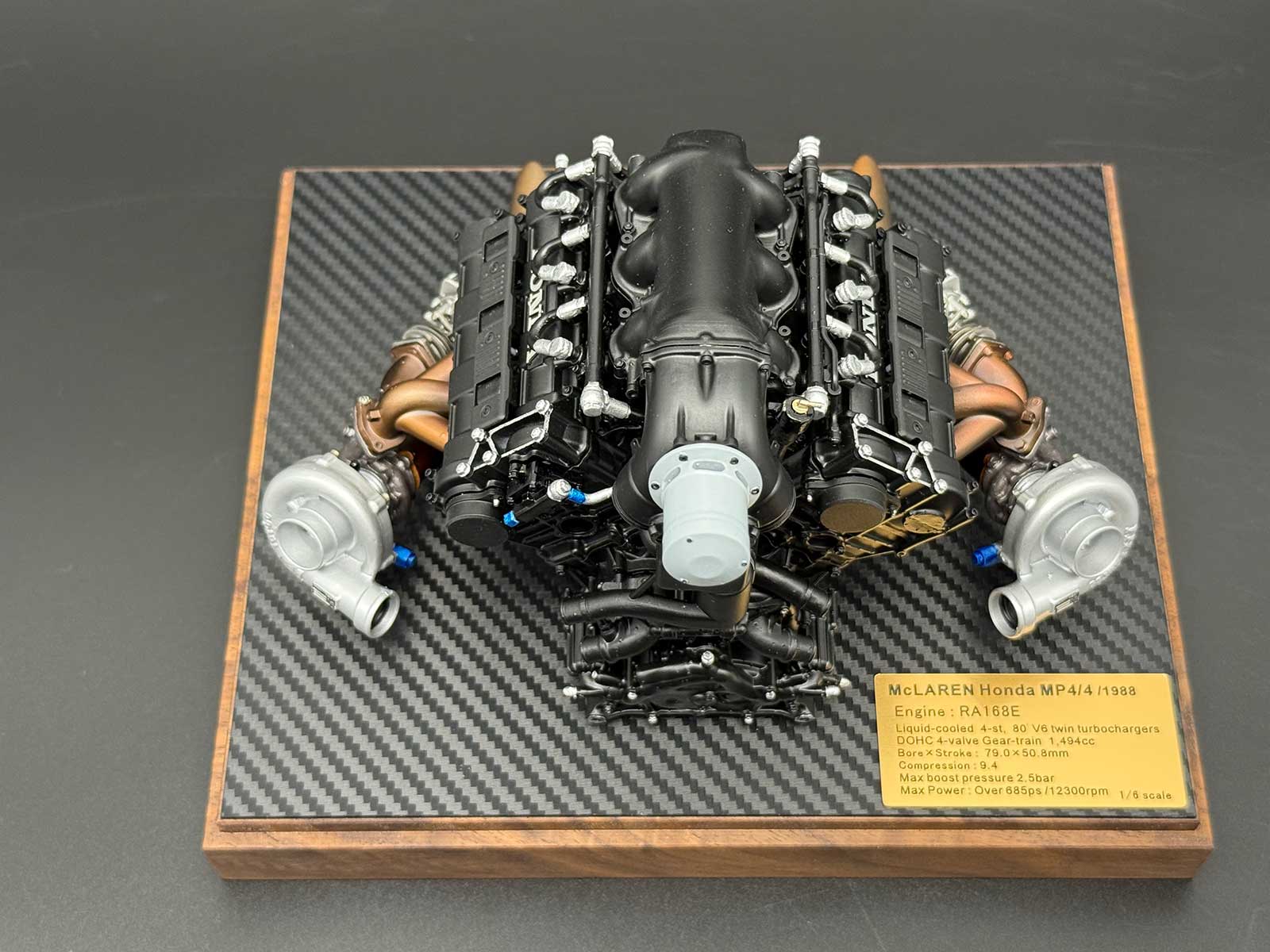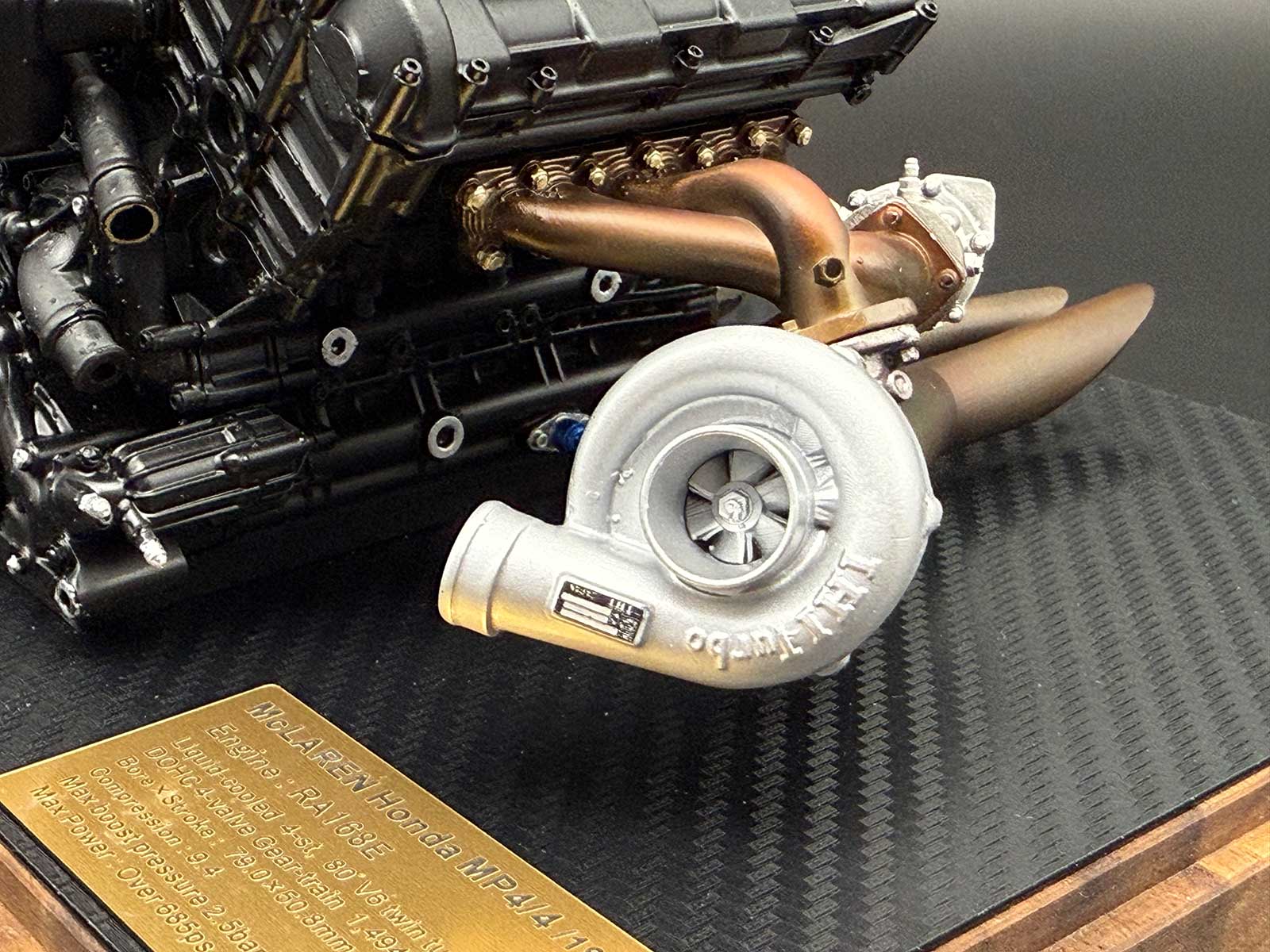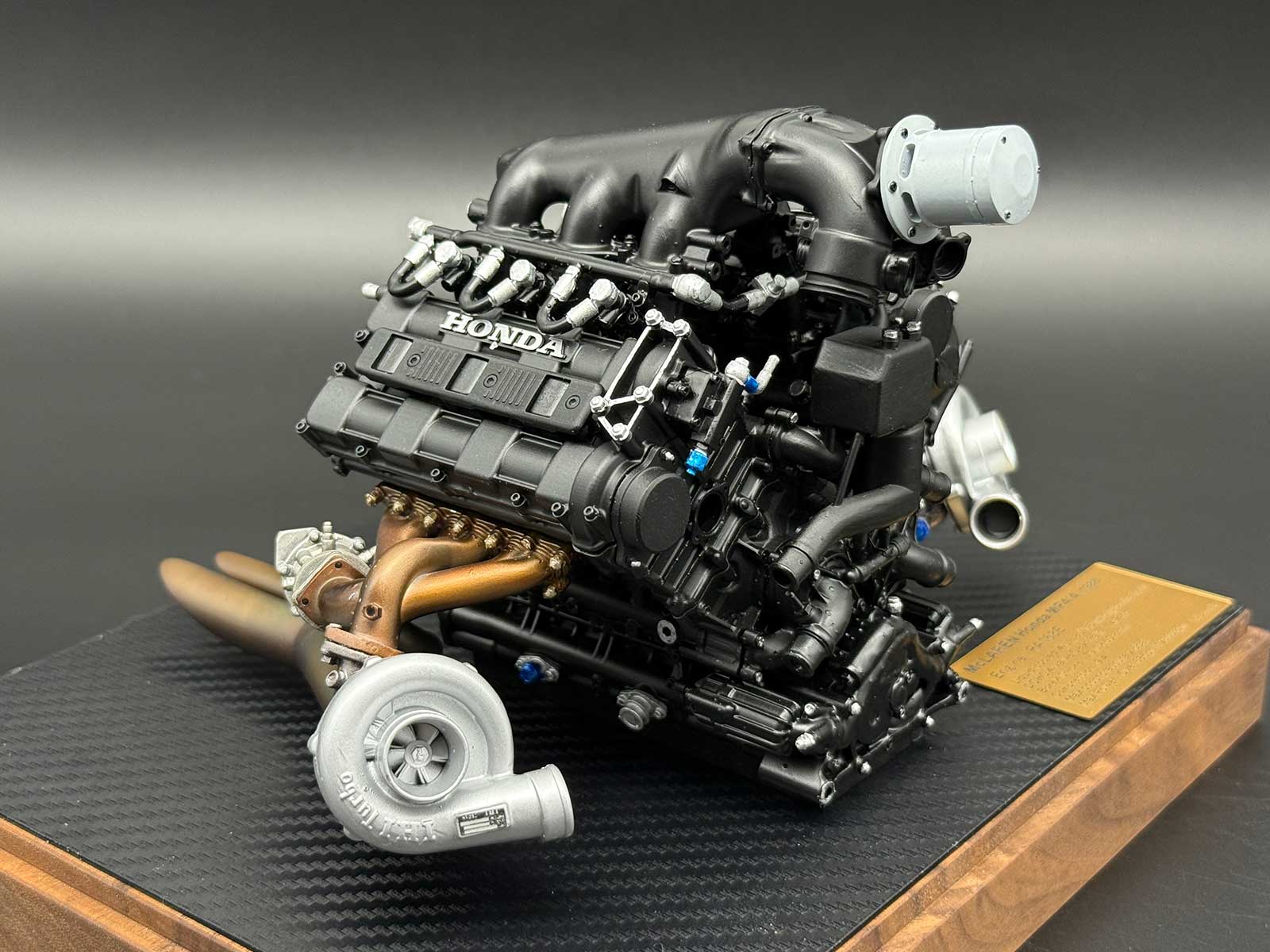 Honda F1™参戦60周年を迎えた2024年にスタートした‟Honda×日下エンジニアリング”のプロジェクト。3作目を飾るのは伝説のユニット「RA168E」です。1.5ℓV6ツインターボを搭載したこのエンジンは、Honda F1™第2期で最強の象徴。今回はこのエンジンをモデル化しました。1988年、マクラーレンMP4/4とロータス100Tに搭載され、マクラーレンチームが16戦15勝の圧倒的な強さでシリーズを制覇。ターボエンジン最終年に華麗に締めくくりました。