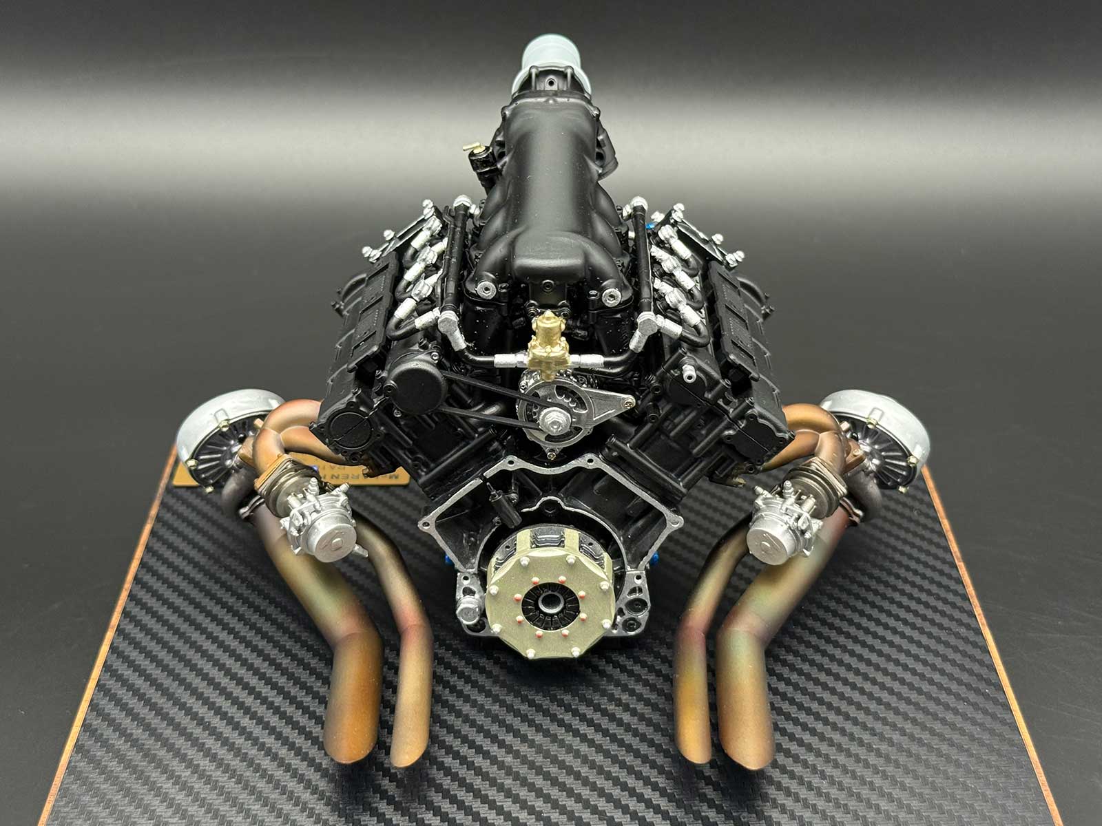 緻密な造り込みとターボエンジンならではの高性能を想起させるフォルムを忠実にスケールダウン。一切の加飾を排除し、研ぎ澄まされた美しさが際立つスケールモデルは、まさに卓上で味わう究極のコレクションとなるはずです。
